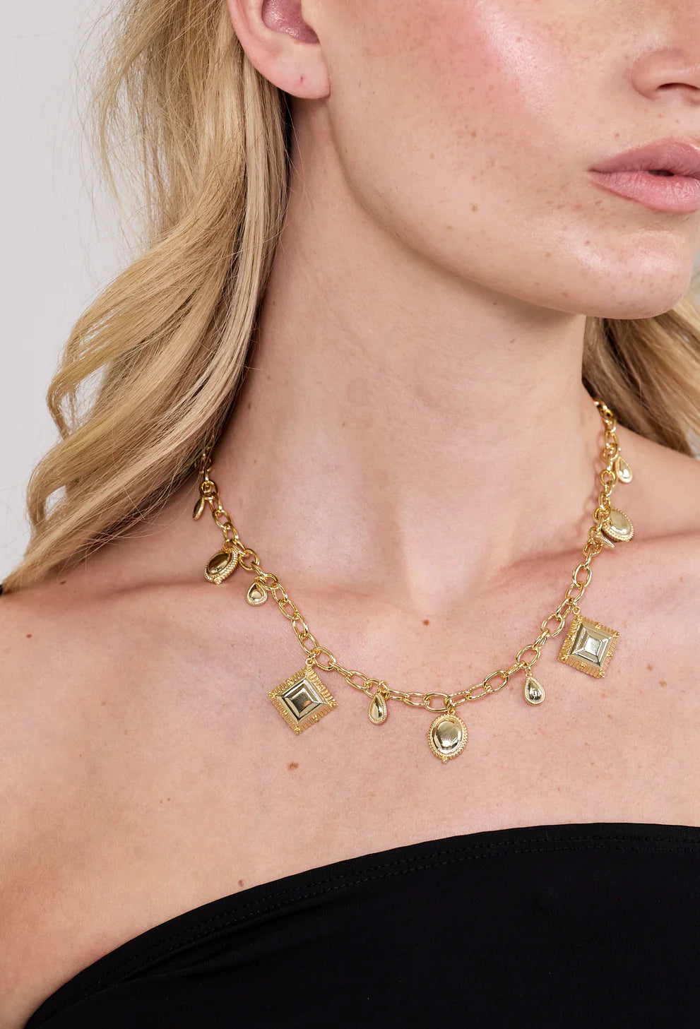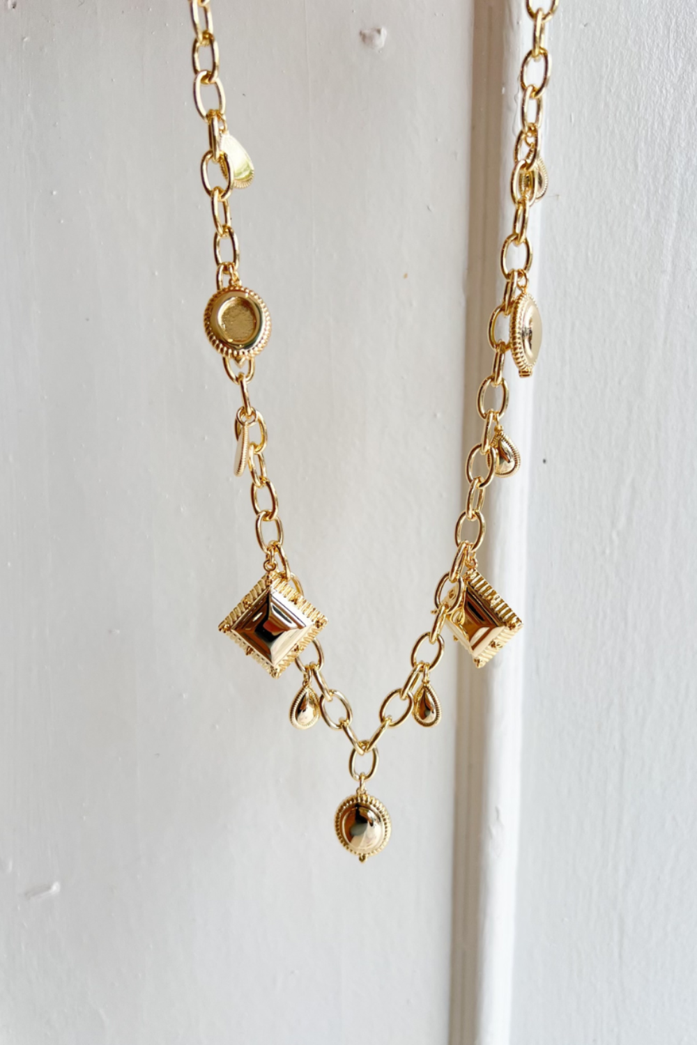 The Dane Necklace is expertly crafted with various charms, adding a touch of whimsy to any outfit. With its unique design, this necklace is perfect for those looking to make a statement!