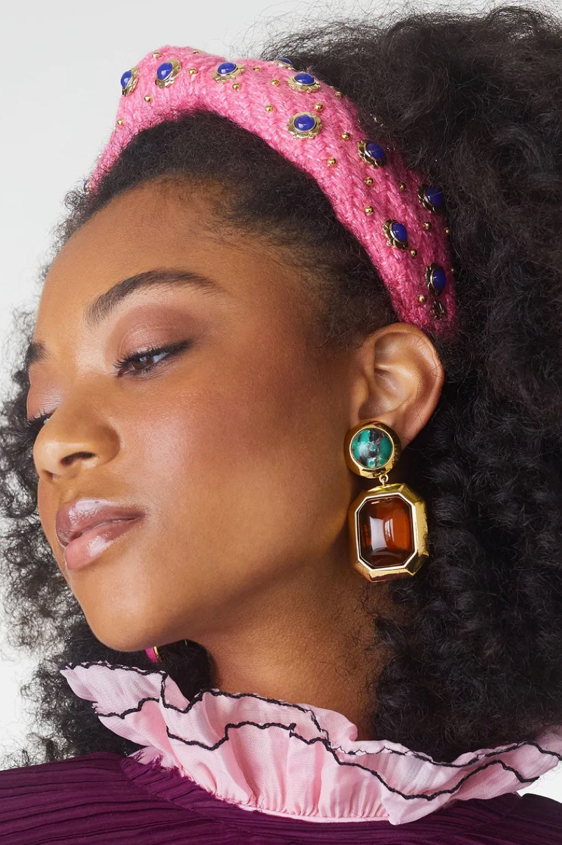 Lele Sadoughi's best-selling, embellished hand knotted headband. Featuring signature bezel set stones.