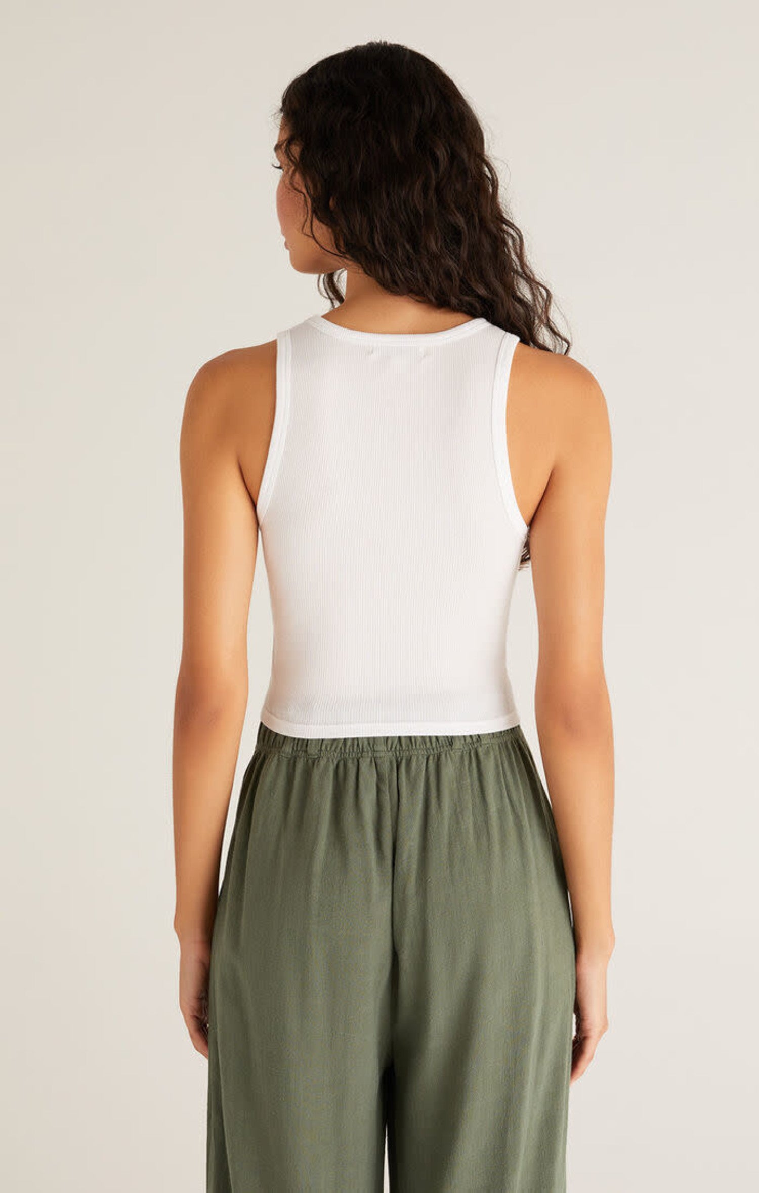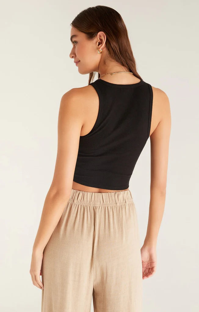 The Hannah Cropped Rib Tank is a must-have for the season, constructed from ultra soft Premium Feather Rib fabric. With its high neckline and open, sleeveless design, this slim fitting tank serves as the ideal base layer.
