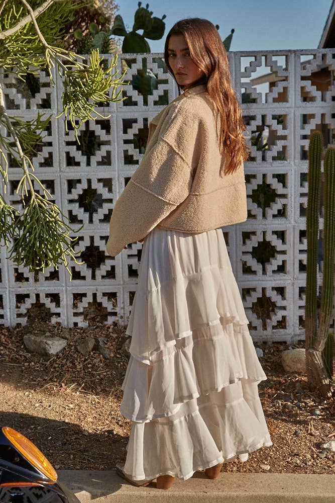 Woven Polyester Sherpa Turtleneck Long Sleeve Bomber Jacket with Polyester Suede Lining