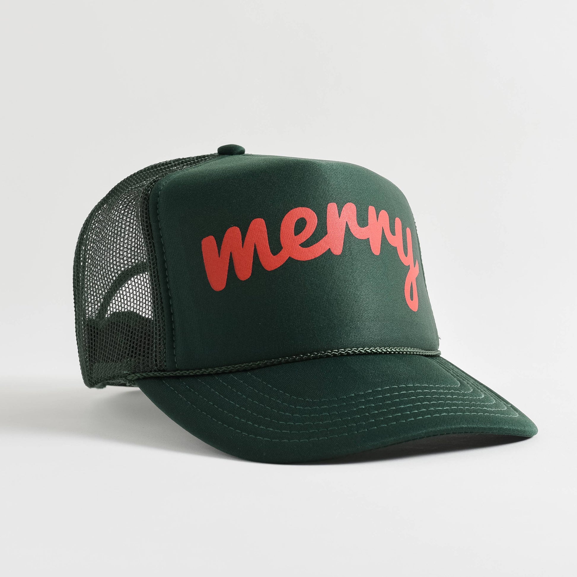 Merry Trucker Hat Green | Christmas Trucker Hat