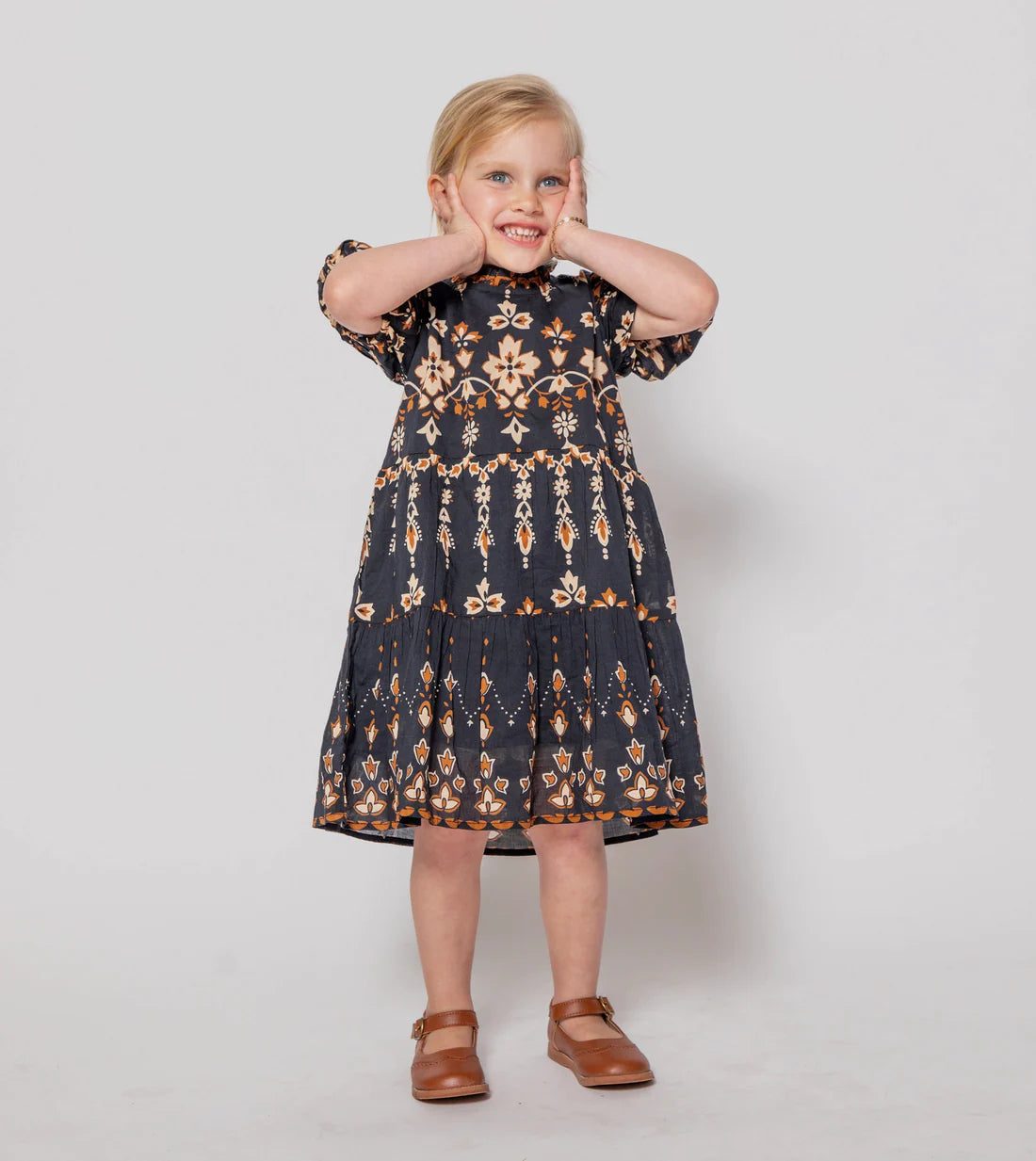 Elevate your little's style with the Littles Ojai Dress. Crafted from 100% GOTS certified organic cotton mul mul, this dress features a place print detail throughout and ruffle detail at the shoulders.